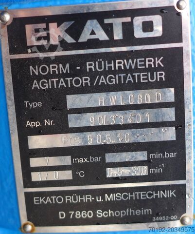 La trasmissione dell’agitatore era regolata tramite un variatore di velocità esterno presso il precedente utilizzatore (ora non più presente); disponibili vari documenti tecnici relativi all’agitatore
