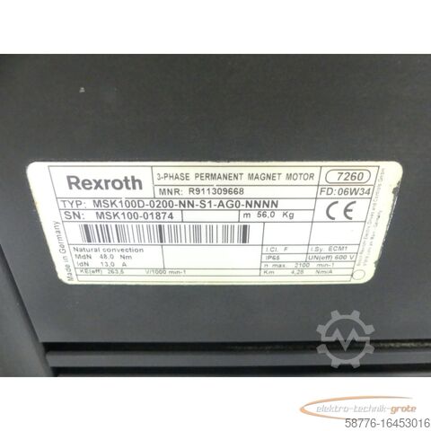 MSK100D-0200-NN-S1-AG0-NNNN Servomotor MNR: R911309668 SN: MSK100-01874